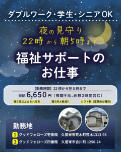 グッドフェローズでは現在、🌙 夜間の見守りスタッフ(22:00〜翌5:00)を募集しています。
